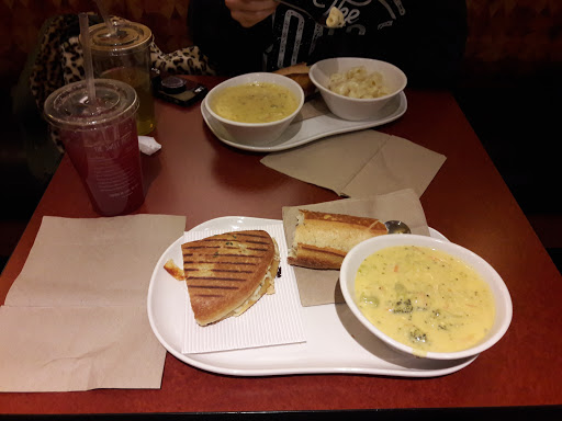 Over priced not enough meet on the sandwich and all Bread I do not know why people going there all frozen soup you can go to and local deli and get butter food I guess you pay for the name what is so healthy about frozen soup and lot of bread