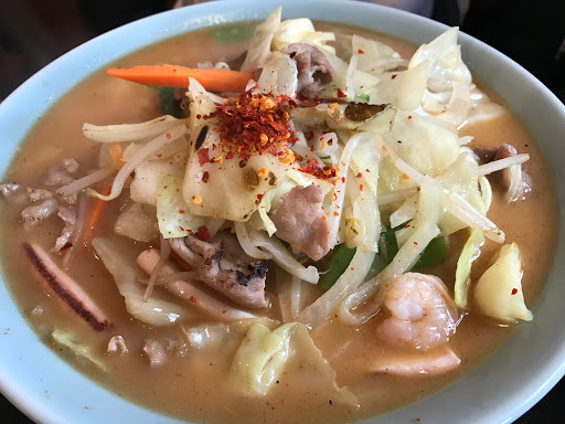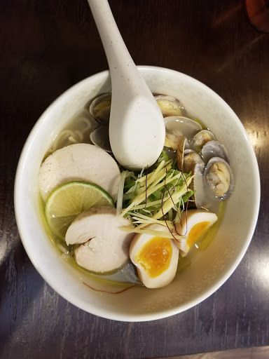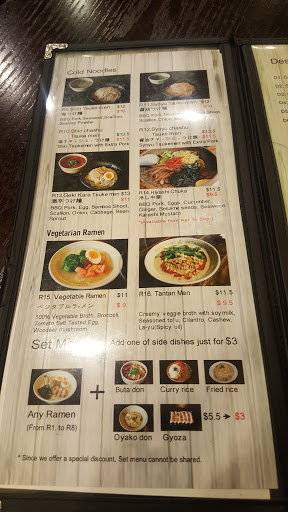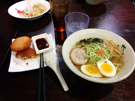 Lighter broth than Sandaime. Theres fish in the broth if you absolutely cant stand it. Curry and ramen combo is nice. Shio, shoyu, and miso all good choices, but shio is the best. Vegetarian ramen available. Has a metallic taste, probably from the tomatoes.
