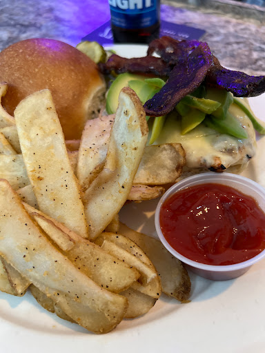 My fiance and I dined here to on two occasions. The first time was a late dinner in the bar area, where we had Chicken Wings (hot) and Burgers. The chicken wings were really, really good. My burger was ok, my fiance quite enjoyed his. On our second visit, we decided to have dinner in the dining room. Its was just as nosy as the bar area, which I suppose was expected. People from the bar area kept poking their head in and looking around, while talking on cell phones. Very rude, to say the least. I could hear our waitress talking about her tips and chit-chatting with another waitress while we ate. As for the food - we both started with the French Onion Soup (too salty, but the melted provolone was great). I had the Chicken Marsala which was mediocre at best. The marsala sauce tasted more like a barbecue flavored tomato paste. Ive honestly never tasted such a bad version. My fiance had the Stuffed Chicken which I tried also and we both agreed it was way too salty and dry. It was stuffed with prosciutto and mozzarella cheese. Both our entrees came with a basic salad, steamed (barely, try raw!) broccoli and our choice of side, baked potato or rice. My baked potato was fine. Im pretty sure my fiances rice was a "packaged" side dish. We got a slice of German Chocolate Cake to go and ate it a few hours after we got home. It tasted like freezer and was way too small for $5. Overall lesson learned? Dont order the dinners. The appetizers and burgers seem to be what they know how to cook. We will return, but only for snacks or sandwiches in the bar area.