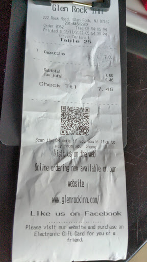 My Dad (who grew up in Glen Rock) and I had dinner at the Glen Rock Inn, Sat evening, April 29th. We both had the Salmon dinner and it was so tasty! We met some friends for dinner and they also really enjoyed their meal. The service was as wonderful as the food. I dont normally post reviews, but as this was such great food and service, I just had to! Thank you for making this a very delightful evening. I really enjoyed the decor, also. The historical photos on the wall were fun to look at!