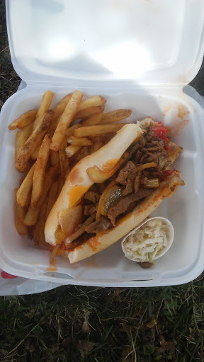 Looking good ice cold beer on a hot day.clams on the half shell pub cheese steak what more could you ask for.