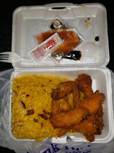 I ordered my usual, chicken wings with pork fried rice, no onions. I made it a point to mention that I wanted the carrots, peas, and bean sprouts that normally come in fried rice. They got this wrong and sent me rice with no vegetables. Also, the chicken wings were noticeably scrawny and over cooked. I immediately regretted ordering the meal when I opened the container.