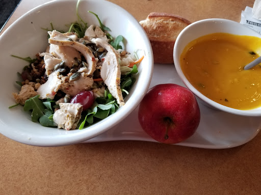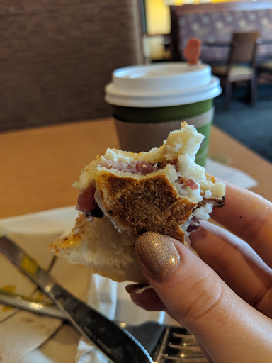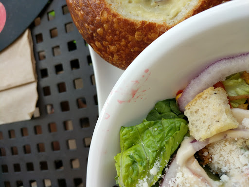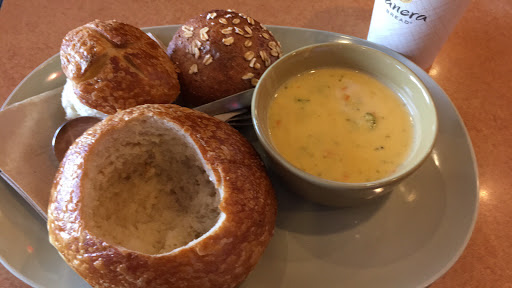 Since this is a franchise, the food tends to be pretty consistent with other Panera locations, which is a good thing. However, the particular location is notorious for messing up my order. They leave simple things out all the time at the drive-thru window (e.g. sides, croutons, etc.). It happens so often that I force myself to check every item in the bag before driving on, knowing that there is a good chance of something being wrong. They have always addressed my immediate issue, but seem to do nothing to correct the problem from occurring again, and again, and again. Today, I paid $0.75 for an extra piece of bread (1/4 of the price of an entire loaf). I was literally handed a piece of bread 2 inches long. I spoke to a manager, he gave me a fake smile, another 2 inch piece of bread, and went back to sorting out orders. They honestly just dont care. I really hate coming here, but again, the food is decent.