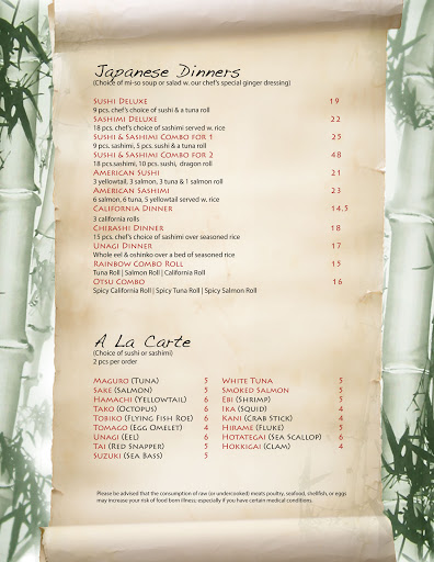 The ambiance is nice and the chinese food is good, however last time I ordered spicy tuna, spicy salmon, and spicy yellowtail rolls I had bones in my sushi >_<. I think sometimes a good judge of a sushi chef and the quality of fish is to see if they can do the simple rolls correctly, so Ill never order sushi there again.