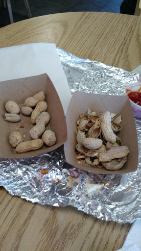 Burgers and kosher hot dogs that you can add bacon to! Weird. Better burgers than most burger chains but its still a burger chain. Dont expect to be impressed. Free peanuts, in shell. Clean and fast. Soft drink dispenser is computerized so there is something for everyone.
