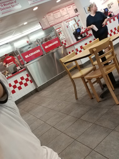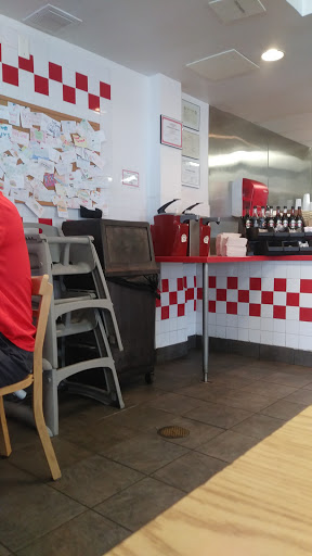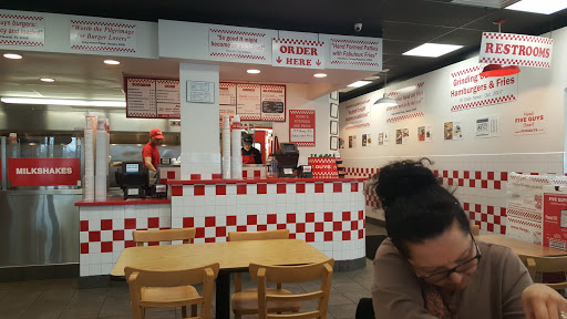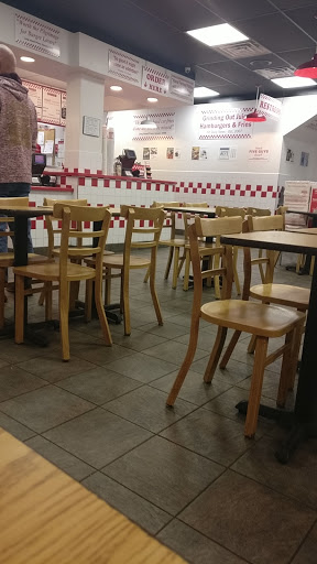 Five Guys Burgers and Fries is a great fast food place. They are a bit more expensive compared to the large fast food burger chains you may think of. Their menu is simple but the taste is great. They offer burgers, hot dogs and fries. They only offer fountain drinks (including water), but no milkshakes! A burger and shake is a classic combo and that is unfortunate that one can not get that here. They offer a lot of toppings which are "free" when you purchase the burger. They offer peanuts while you wait for your food order. It doesnt matter if you plan to eat in or take your food to go, it will come bagged up for you.