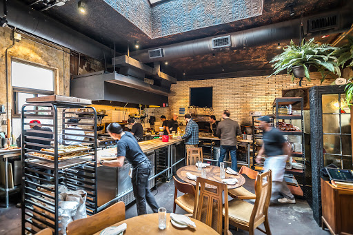 Tried the spinach quiche and an espresso. Decent espresso, quiche was a bit salty for my taste. There is an open kitchen. You can watch the chefs and see the bread oven from the bar. Plenty of seating inside for the outdoor tables are full. Staff is nice, if a little bit dazed and confused.