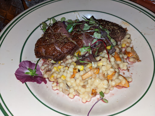 This is my first review ever. Not a complainer at all, but the entrees were terrible. The hanger steak was inedible and the rotisserie chicken at the super market was honestly better. Not many other choices on the menu. My 15$ gin drink tasted like water and sugar. There was no air conditioning!!!!! Literally dripping sweat. Some tables have 1960s couches as the seats. Do yourself a favor and save the 150$ for augustinos. O, it had brooklynesque ambiance if thats all you care about.
