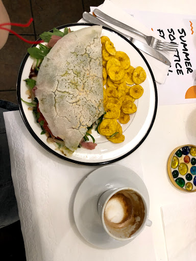 The Paratha with proscuitto, tomato and cheese is DELICIOUS!!! I only wish I hadnt taken mine to go; I wouldve ordered a second!! The cafe is cozy, but there is shaded seating outside and the service is very friendly! I definitely recommend this neighborhood gem and look forward to returning soon!