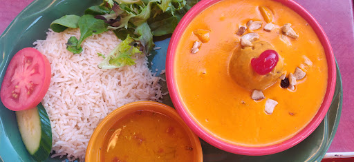 The food was amazing!!! Fresh, tasty, not too spicy, just elegant and beautiful. I had the chicken Kashmir. I cannot tell you how great this dish is!!! Just the right amount of spice, rich, creamy, and a slight crush with the added nuts. We also had this coconut creme dish I dont recall the name off. It was also a great pic!! I recommend the saucy dishes if you are a dip extraordinaire like myself. Especially with the garlic Naan; warm with just the right amount of toast and garlic (not overpowering at all).