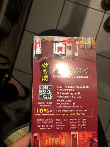 The best Chinese food in town. I lived in Hoboken for 3 years and have worked here for more then 5 and have tried them all. Precious has the best Chinese food by far and their Sushi can be among the best as well, though some nights I would say it is just average. Delivery times were always quick and the food is not horribly overpriced. Service is decent when eating in as well, at least for a Chinese restaurant.