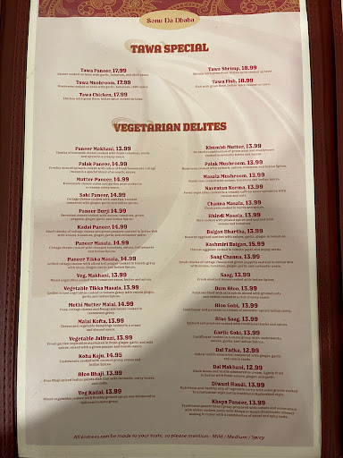 The carpet looks like it has not been cleaned in ages, the sofas are stained. Quite dirty. Food is horrible and a disgrace to punjabi cuisine. When pointed out the owner was very ungracious and rude. Nothing of the punjabi hospitality that indians usually experience. Some of the food seemed like it was picked up frozen from the supermart and warmed. Sad the owner claimed that is how punjabis cook. Would suggest they visit punjab and learn a bit about real punjabi cuisine and its hospitality. The place is a sham in name of fine indian dining. Would not recommend anyone looking for decent authentic Indian food.