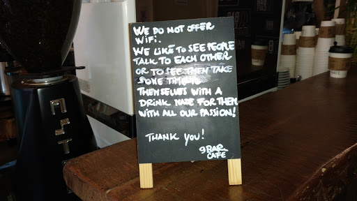 9 Bar has great coffee lacking equally great Wi-Fi. This is a plus and a minus. PLUS: You get to have great conversations that can start at any point with individuals there or those with you. MINUS: Not having Wi-Fi for the casual need to connect or being able to get any work done in a “business centric area” of Jersey City is hard. The baristas are very nice and attentive.