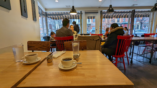 I want to start off by saying that I actually really like this place... but that lately it has been really disappointing. Things I like: relaxed, casual athmosphere and friendly staff. Things I DONT like: it can take a really, really long time to get your food (this morning for example, it took 35mins to get coffee!) and when you do, the quality is inconsistent - bitter coffee, or cold eggs for example. And the wait isnt due to a full house, this is more likely to happen on weekday mornings with only 2 or 3 occupied tables. Id really like to see improvement... but if things dont get better soon - I think Ill have to bite the bullet and find a new breakfast haunt.