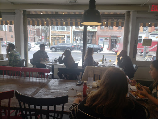 I came here with friends during a busy Saturday brunch shift. We waited about 15 minutes for a table of four but the staff was friendly and accommodating. The food was just okay. Perhaps I ordered the wrong thing but I usually judge a breakfast/brunch spot on how well they can make an omelette, and omelettes are usually one of the healthier choices of the menu. I wasnt thrilled about their standard options but there was a "build your own" section on the menu so I ordered a simple feta cheese and spinach one. When it arrived, it was a dark golden brown on the outside which is almost never a good sign. As suspected, the eggs were overcooked and rubbery. Even stranger, though, was that the feta and spinach were not Incorporated into the omelette at all. They just had the egg wrapped around them like soft taco and the spinach was raw and the cheese was barely above room temperature in large cubes. The whole thing along with the toast was just warmish and clearly had been sitting around while the other dishes at the table were prepared. Speaking of, one of my table mates ordered "corned beef hash" with poached eggs but what arrived was some skilled fried strips of corned beef, a side of home fries and the eggs. Thats not what corned beef hash is and he noted this to the server. The other two guests that the table ordered the Louisiana farm plate, I think it was, and it came with fried chicken and drop biscuits and their dishes both look very good. Clearly this is the specialty area of this place. The atmosphere overall was fun and hip but I will not be rushing back for the food.