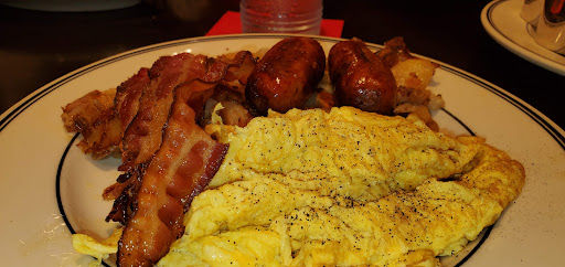 Wanted to love this diner... live down the street... "Ooh, a 24-hour-diner by my house," i thought. Was picturing some cheap, fluorescently lit, dingy, dirty, booths-and-stools-kind-of-place with a greasy laminated menu and Franks Red Hot on every table. Instead what we got was a place designed like a hip bar/lounge at a midwestern airport terminal. Okay, fine, lets have a look at the menu. After sitting down for about 12 minutes, water finally appeared on our tables, in extremely tiny glasses filled with ice. Maybe two sips of water in there. Anyway, the menu matches the decor— it is trying so hard to seem classy, but most of us just want the regular greasy spoon stuff (cant i just have a normal Cobb salad instead of a ‘West Coast Cobb’? Can i have meatloaf without the firecracker spicy ketchup gravy? its midnight for gods sake; i dont really need to be impressed by these quirky twists on old favorites.) So, after ordering, we waited. For maybe 30 minutes. Restaurant is maybe one quarter capacity. There seem to be at least 5 people striding around the dining room, servers with iPads who seem so focused on their POSs that they arent seeing the tables full of diners with empty glasses in front of them. The uncommonly beautiful hostess is leaning near her podium, looking out at her coworkers and not doing anything. Waiting to cheerfully greet some new guests into this bleak manifestation of a transitioning neighborhood. She was really nice, but then so is the homeless guy who holds the door open for you at a McDonalds. My friend asked for more water, and 120 seconds later a server came by with a water pitcher that was nearly empty, and then apologized for not being able to fill her already tiny glass. Then our food arrived! Yay! I got corned beef hash that someone seasoned with an aggressive amount of oregano for some reason, but would have otherwise been perfectly serviceable. Was confused that the corned beef was mixed with the string hashbrowns and served on a plate with home fries, another type of hash browns. Wasnt sure how to articulate my frustration with that. $10.50! No Franks, only Cholula, which rules, so thumbs up. My friend, she got the fried chicken basket (which was served with ‘Creole Slaw’, which i guess is another name for just regular-ass cole slaw, $14.50) and disco fries which were actually delicious. The fried chicken was fine, but honey dipped, giving them a slightly cloying and unnecessary sweetness. ‘Shouldve gone to Popeyes,’ she said, and she was right— if only theyd been open this late. 2 stars, out of 5 atmosphere: in a space designed like a ‘hip’ chain hotel lobby in 2004, servers seem simultaneously frantic and idle. A lot of HD TV screens add a depressing glow to the place. sound: generic house music plays at an uncomfortable volume and guests can get rowdy as it is a 24-hour diner. recommended: french fries drinks and wine: cool craft brews on tap, embarrassing cocktail list from maybe the 1990s, generic wines price: $$ (moderate-to-high prices, for this style of food)
