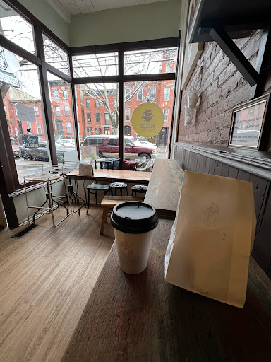 This place is the best coffee in Jersey City. Love their charming, no nonsense coffee bar and the quiet courtyard at the back is perfect to unwind and read while having coffee and their amazing banana bread.
