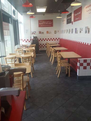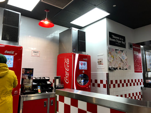 Just what Id expect from a Five Guys... friendly staff, excellent burgers and fries. Expensive, but worth it: just over 10 bucks for regular drink, small cheeseburger and small fries. Special note: This branch has milkshakes. Very, very good milkshakes.