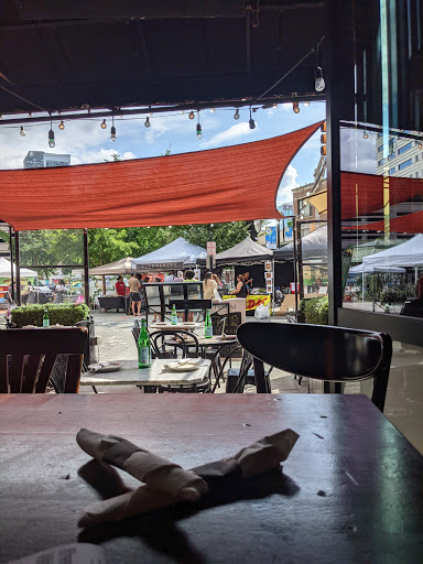 Each part of Grove square has its advantages and disadvantages. Coffee shop has cheap beers but theyre very small. Its a good jump off spot if you want to buy a round and get a beer in everybodys hand. The pizza place is good for a late night slice, reasonably priced. Bistro has pretty good food and a quieter environment if youre sitting down with 1 or two other people. Also the outdoor seating is clutch if you can find an empty space. Location is the key to Grove Square. Right off the Path its great for the beginning or end of the night as you trek further up Newark Ave or Grove street. Glad this place is here