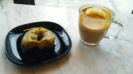 Got a pretty good iced latte today. They have limited milk options (only had whole or skim) but maybe Im just being spoiled by Starbucks. The staff were very friendly and the place was very clean. Really like the minimal design, props to the decorator. They have Planet Donut donuts on weekends here which is cool.