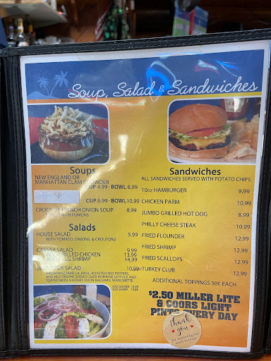 Not trying to be rude but this place needs a serious upgrade. Bathroom is horrendously filthy, I mean seriously thats the first thing that needs to be taken care of. Ordered the Manhattan clam chowder (from a can), which seemed to have beef in it and tasted strangely like chili, when it came out is was cold but the waitress fixed it. Heres what I recommend to happen as a fellow restaurant owner, hope this helps. 1. The TVs look nice but it makes me wonder why so much money on entertainment and no money invested into making the place look nicer. 2. Upgrade the environment to make it look more like a modern bay side restaurant and not a Dive Bar 3. Find better food either by hiring a professional/new chef or talking to your local Sysco representative. 4. Train the staff better, waitress did the minimal amount of effort in serving us. 5. Again clean the place up in terms of hygiene, if the bathroom is that disgustingly dirty it gives me horrible Ideas about what the kitchen looks like.