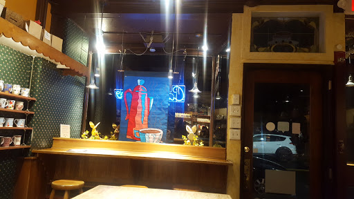 I had maybe the most awful macchiato of my life here. I was confused by the menu because 3 sizes of macchiato are offered, so I got the smallest one. I was served a traditional 2 oz drink with lots of foam, and the texture was quite nice, but I could not believe the bitterness. Go to this place for a flavored lattee, dont expect a trendy third-wave coffee shop. Otherwise, the atmosphere is fairly nice, I like all the little things they sell, and the staff was nice.