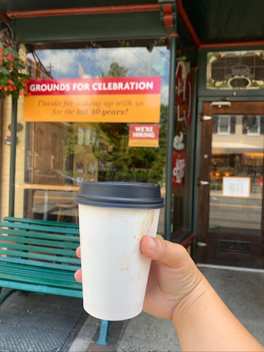 Sat on the bench out front overlooking a beautiful church. Coffee was ok.