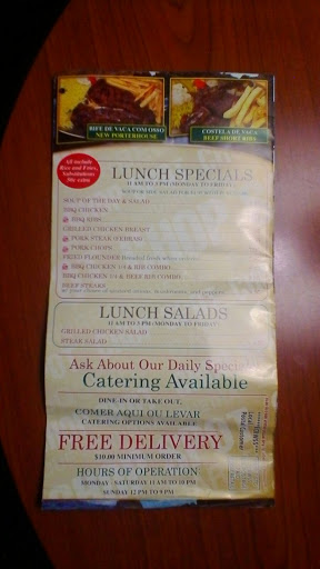 Reasonable prices on the food people are nice theyre bilingual have a great skirt steak vegetables and many other dishes