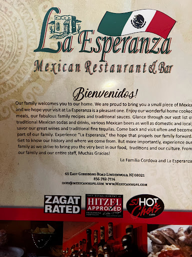 Im about to break it down REAL. Im a Cali transplant, thrilled to find La Esperanza after many disappointing Mexican meals in NJ. This place has 5 star potential, but its a solid 4. Food? Authentic, generous, mostly tasty and on point. Ive tried: fajitas, empenadas, quesadillas, giant fat steak burrito, nachoritas, taquitos, skinny margaritas, watermelon margaritas and guacamole. Fajitas, beef empanadas, chicken quesadilla and nachoritas get honorable mention for mexi-ecstasy. Taquitos were bland/dry. The giant fat steak burrito was ok, the steak in it was killer but too much rice and they didnt melt the cheese over top nor coat with enough red sauce to be on par. The table chips suck. Kind of stale and the salsa lacks chunk. Im saddened by the watermelon margarita. It was made with pucker. NOT fresh fruit. If they had fresh fruit ritas, I would pay a grip and camp out at the bar. The skinny margarita isnt awful, lots of lime and would be fixed with a splash of OJ to balance the lime. Hint hint to the bartenders. ;) As for the roach reviews... Guess what? Even the finest restaurants get roaches. I hate to break the news to you diners but its a part of restaurant life. I managed a 5 star fine dining restaurant in CA and we got them from time to time no matter how perfect and clean we were. You arent going to die and the health dept wouldnt allow them to operate if the situation wasnt addressed. Its not appealing to see one, but if you write them off for a roach siting, may as well not dine out anywhere because I am pretty certain most restaurants get insects. Sigh. The outside deck is small but quiet and good on a summer night. Bar is not very big so dont bother on weekend. Staff so far was friendly. The young male bartender is awesome. Great service from him. He said his mom made the dessert special so im guessing its a fam biz, even more reason to love. Festive decor and music, decently comfy seating. OK for large groups but not ideal. Great date spot.
