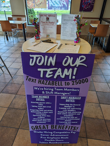 Worst tacobell this place should close down says lobby is open but they closed it cause the staff is lazy as hell its 11:00pm but what to expect afterall the staff was very bad picked fail ass tacobell