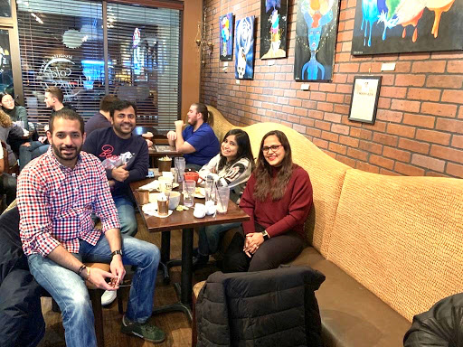 Great place for a cup of coffee and a tasty snack. They have a very cozy atmosphere for catching up with friends or just enjoying you warm beverage on your own. Their drinks are amazing. My favorite is the "Brown Eyed-Girl" with hazelnut and whipped cream. They have live music at night too! Only downfall is that the service is a bit slow. You will probably have to get up yourself to get your check/pay if you dont want to wait that long.