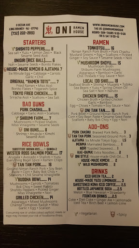 Waited weeks for this place to open with excitement that maybe a ramen place closer to me would be good enough to be an alternative to taking a trip to philly, ny, or new brunswick. Boy was I disappointed. Went here exactly two weeks ago, and will not be coming back. Ordered the ramen tots, pork buns with sauce on the side and no veggies, and two bowls of ramen. The appetizers took 15 minutes to get to us and were horrible. Ramen tots were bland. Pork buns were overcooked and not complimented well by the garlic aioli. I get that maybe garlic aioli was chosen because of the area this ramen place was in, but it makes the dish not feel like an authentic ramen house dish. 30 minutes pass and we ask where our ramen is. They said its almost done. 10 more minutes and I had it, cancelled the ramen. Maybe Im spoiled by the numerous great ramen houses ive been too, but over 30 minutes is excessive to wait for ramen. The place was half empty! I paid for the items I did actually receive, and even that took longer than it should have. Left here and immediately took the trip to my favorite ramen spot in philly. Was in that place, ate, and left in less time than I spent in Oni Ramen House. The only good thing about this place was the decor. The pictures of ramen houses on the walls were the closest thing to being an authentic ramen house in the place. What a disaster.
