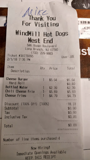 by far the best hot dog in NJ, the other selections are ok, the burger is decent for the price, fries are ok, but if youre going to try the Windmill, you have to get a hot dog.
