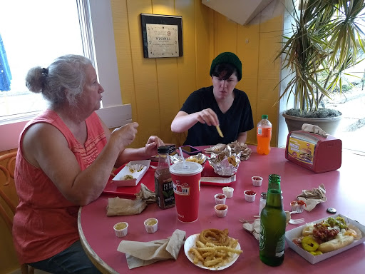 Let me say the food is good, its grilled hot dogs, burgers and fries. Cant go wrong really, and they are always really good! Cheese fries are where its at! HOWEVER! The food cost as much as going to a decent restaurant! Dinner for two can cost over $30, hotdog, fries and a soda. Really outrageous, I would rather go somewhere else. Would I eat here again, yes but not with my money or if its really late at night since they stay open late during the summer.