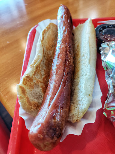 Best hot dogs in town. You apply which & how much condiments you want on your doggy to make it perfect. Well air conditioned so bring a sweater or eat outside on pic-nic tables bathed in sunshine