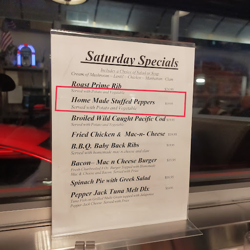 Basically its terrific home cooking that someone else prepares. Served by people you enjoy talking with. And surrounded by loyal neighborhood residents who are regulars at the diner, which is an endorsement in itself. Breakfast, lunch, or dinner, you will leave planning to come back again. If you want to visit a genuine diner, this is it.