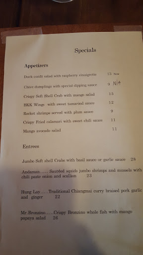 Other than perfect combination of authentic Thai taste with trace of French style and presentation, the ambient is just right for young couples, anniversary occasion, friend or family reunion, and small group party. Our group ordered six different dishes to share and try varieties of Thai food. We loved and finished them all. Restaurant owner pay attention to every single detail not only to the foods but also to the interior design to present the beauty of Thai culture blended in with American culture. We enjoyed our dinner with great hospitality. We definitely will go back there again. By the way be sure to call and make a reservation in advance if you plan to have dinner on Friday or Saturday night. Otherwise, waiting time could be an hour. However, in case you walk in and have to wait, this town is very nice and walkable.