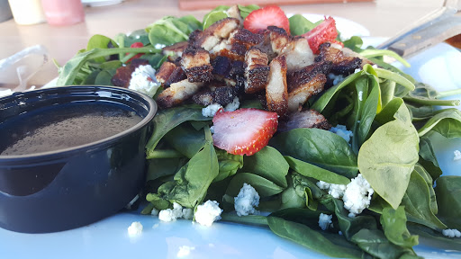 My meal was delicious got a salmon burger which you can customize! However my husband ordered a wrap which was good until he felt something slimy which turned out to be avocado. No avocado in the wrap (there wasnt supposed to be) it was only on the outside Cleary from a dirty knife. He was so grossed out he had it sent back. Cross contamination is a very dangerous thing all chefs/cooks should be very aware of. My husband has been a chef for 10 years so he was especially grossed out being it was a sanitary issue. Our server was very apologetic offered us something else(we had to leave and my husband just had no interest because he was just disgusted). Then she took it off our bill. The customer service was great and they immediately dealt with the situation. However sanitization is something we always expect at ANY food establishment. The restaurant it self is very clean this is obviously a dirty cook not wiping their knives. Which is why Im giving a 3 star review as opposed to a 1.