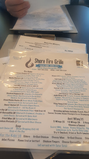 Mediocre. I have heard first hand rave reviews of Shore Fire Grille...and boy were we hugely disappointed! We anticipated spot-on flavors, something we can say we would go back to....we walked out saying "meh...not impressed and we will never be back". Their $3 side of cole slaw was not only over priced but BLAND and tasted borderline "gone bad". Two people explained it is because they use Greek yogurt instead of mayo. Thats all fine and dandy but they were missing the classic slaw spices. A bit of celery seed would have helped tremendously! My $16 salad with seared tuna was ok...typical of many restaurants though they charge you a ton for basically a pile of baby lettuce and arugula with a few extras thrown in. The presence of tomato was microscopic, barely any cucumber too. My honey had the special for $11...some sort of Buffalo chicken burger with bacon, sauce, etc. Kind of sloppy but with buffalo anything, that is to be expected. He says it was ok...only ok. Oh...to start, we had cups of lobster bisque...rather large cups because they were those little stoneware bowls with handles...and they charged $7 each for what was a bland creamy tomato-ish bisque with a few microscopic pieces of lobster. Again, lacked flavor. Want to just eat so you wont die? Go there. Want to have your socks knocked off with how good the place is?? Skip it.
