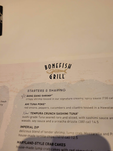 We used to go to Bonefish a lot when the one in Manalapan first opened. The place was new and clean. Service was good. We liked the bread (complementary), Bang Bang Shrimp (both as an appetizer or tacos), Fish and Chips. Occasionally, they had Lobster Tail promotions and you got a good deal. We stopped going for lunch when they got rid of the lunch menu and served the same menu all day. We did not like to eat/pay too much for lunch and for the same dish, it was more expensive on the dinner menu. Also, they stopped serving the Bang Band Shrimp Po-Boy sandwich , which was my favorite dish.