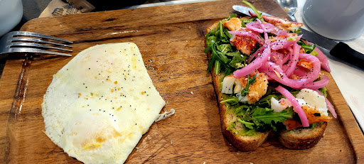 Food is great; Creative menu and friendly staff. Love the french press coffee and a pitcher of water on every table so you dont have to worry about looking for a waiter when thirsty. Creative and yummy hot beverages. Really enjoyed their huevos rancheros and hot cocoa! Just get there early - the line can be insane.