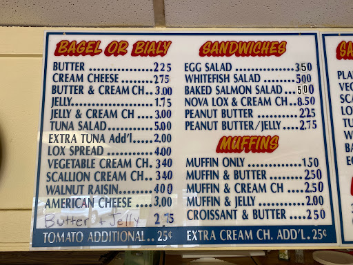 This small little bagel shop serves the absolute best tuna and the best fresh bagels... There both amazing and so tasty... I can eat here everyday and never get tired of it. The tuna is out of this world. And there not very expensive. Everybody should stop and try this little bagel shop in Manalapan.