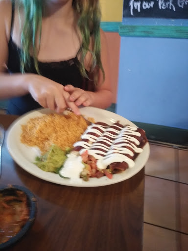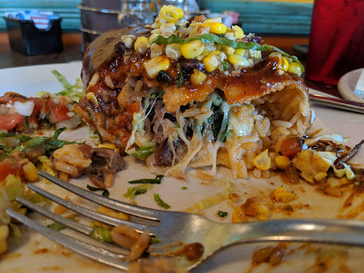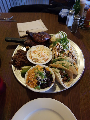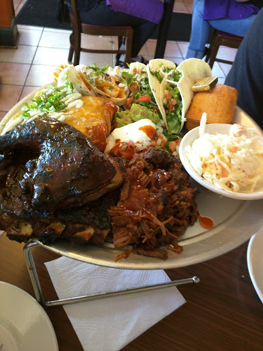 We are new to the area so we were looking for a nice place to go for a good satisfying meal. I wasnt sure I was in the mood for either Mexican cuisine or BBQ. But let me tell you, this place is honestly amazing. It has the best salsa I have ever had in my life. It wasnt like your typical restaurant style salsa, usually very watery with lots of chunks that are hard to keep on a chip. It was thicker, it would coat the part of the chip you dipped in it and it seemed like it may have been really finely chopped ingredients. I got a very large burrito that was absolutely amazing. it was packed with beans and rice and ground beef (the meat I chose to have in it). They had a bunch of meats from chorizo, to beef and chicken, to brisket. My wife got the chicken enchilada and for once the chicken in it was not dry or tasteless, it seemed very much like they may have had BBQ chicken in it and it was completely awesome. We split a piece of tres leches cake and it was amazing. If Im not mistaken the whipped cream was made in house as well judging by the consistency. It definitely didnt seem like out of a can. If it was bought by them, it must be the bougiest whipped cream on the market, it was really good.. The service was very good, there was only one waitress (we were there around 2pm) but she attended to our every need flawlessly. Our food was quick to come and the place had a nice little charm. There was seating outside which may have been nice, but it was very hot today so we sat inside. The inside temperature was very cool, I loved it. I would say that it may have been cool enough to bring a sweatshirt if someone gets cold easily, which is a reason it earns a star right there. I like it cool and even my wife found it a perfect temperature inside probably due to fact it was hot out today. The prices are fair and they run a full gamut of foods and prices. Some things were as you would expect. I got a quesadilla for a starter and it ran about $9, which is what you would pay anywhere for quesadilla. They had a 3 lbs burrito which would run you $32 and full rack of ribs would run you about $30, which is on the surface expensive, but a good price for that much food by anyones standards. I got like a jumbo burrito which ran about $17 but boy was I stuffed when we were done. Go there, you wont regret it. If I could give more than 5 stars I would. It may change on my next visit, but its going to be hard to live up to such a good first visit no matter what.