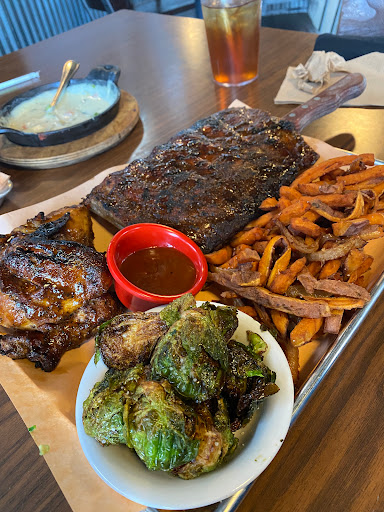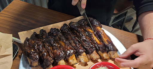 Heard so much about this place, that I finally decided to make a trip out since I was craving BBQ. As a preset, I have traveled the country and experienced BBQ from all over so Im making this review in comparison to what I have experienced so far from y travels. First, as you enter, you can see how small the place is. Not much seating, which isnt a problem, but the decor itself bland. No greeting area, you walk right into the dining area. I was greeted warmly as I walked in and was seated within a few minutes of walking. Large plain tables at least give you a lot of dinning space if you are a party of 2 to 4. Service overall was mediocre. While Friendly, Towards the start of service we were barley visited. When dinner arrived, we did get more attention. The staff was at least friendly and our food came out in a timely manner. Now for the food, get ready to spend anywhere from 20-30 dollars easily for dinner. You do get A LOT of food for the price, which is pretty savvy. However the meat itself left much taste to be desired. Between my Fiance and I we had the opportunity to try their Wet Spare, Wet Baby Back and glazed Beef Ribs (their special for the night.). The Beef ribs were a bit bland. You could taste the glaze, but the meat it self had no flavor to it. The Spare Ribs were over cooked (You could taste too much char on the skin) and the Baby Backs were very dry. Again both were rather bland. I threw a bit of hot sauce on each to get some spice and taste to it, which did help to enhance the flavor, but it was disappointing I had to come to that point. I took the Corn Bread and Rice and Beans side. Rice and beans were pretty good, but the Corn Bread had a very dry and stale taste to it. Some people enjoy this, but I prefer a more moist corn bread. Over all, it was a decent experience. I did get a lot of food for my money, but it could have been better. I have been to Ribs shacks in the south which look nicer to eat at, but it wasnt a dump. Parking was difficult (come early if you want to find any). I can see myself coming back with friends who are starving, but not often. Wouldnt come to impress anyone, just when hungry.