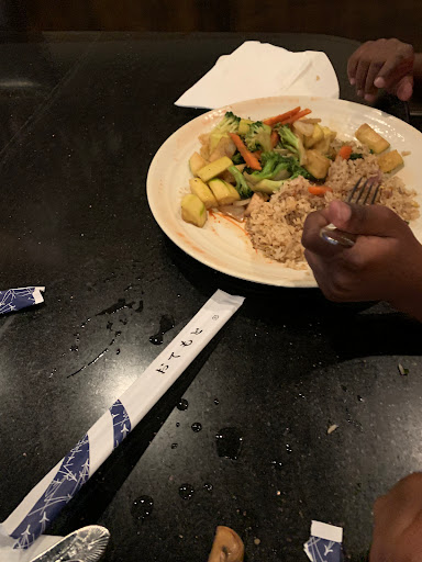 Note: My review is probably only relevant to fellow vegetarians, of which Im guessing there are approximately three in this part of NJ. If you order vegetable hibachi, it will be cooked on the same surface as the meat, with only the slightest of attempts at separation, so you have to decide how particular you are about this method of preparation. All hibachi orders come with the requisite iceberg lettuce salad, mushroom flavored broth, and fried rice (you can substitute white rice). The vegetable order ostensibly comes with silken tofu, onions, zucchini, and broccoli. Mine was heavy on soy sauce and onions, light on green vegetables. I counted three small broccoli pieces, one of which didnt make it onto my plate during the ceremonial flinging of the orders.