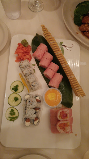 My daughter finally convinced me to try the place last night, so I took the kids there. Food: the menu choices are a mix of Japanese, sushi and thai/malay with a lot of neo/fusion (i.e. Americanization) thrown in. The ingredients are overwhelmingly american and so is the preparation: bland, way too much meat (chicken - white meat only, shrimp, beef - no pork or anything else except specialty dishes). Most dishes included carrots, pea pods, bellpeppers, baby corn, mushrooms and asparagus - these where in two soups, a main dish and an appetizer - and we tried to order differing dishes. The fried rolls were bland and greasy. Hot and sour soup and basil shrimp where non-exceptional, but pretty good, unlike the rest of the meal Service: Indifferent service, that started with the waiter standing by the table and demanding our drink order before we sat down and continued with plates being removed before we were finished intermingled with long disappearances of the waiter. Finale: after we finished, I signed the credit card receipt leaving an $8 tip (on a tab of $78 or so). The waiter came back to the table informing me that he thought I might have made a mistake leaving a less than 15% tip. When I confirmed that I left what I intended, he hung around for another few minutes asking me if I might reconsider. I was absolutely appalled, but maintained a very polite demeanor. I do not think I could ever imagine having an experience like that in a restaurant; I do not need to comment on a possibility of a return visit. Unfortunately, zero stars is not an option here.