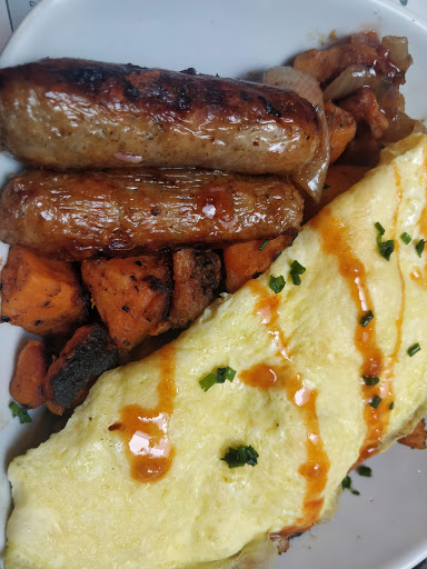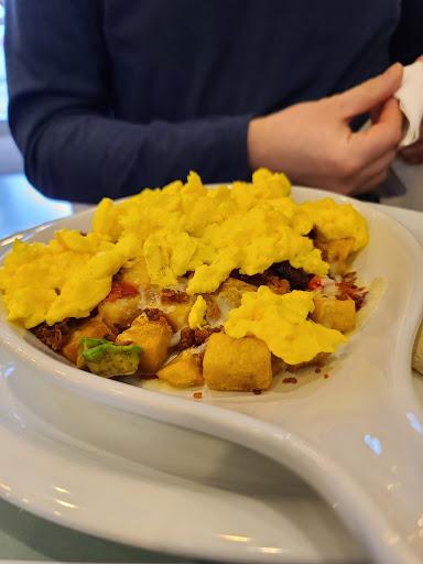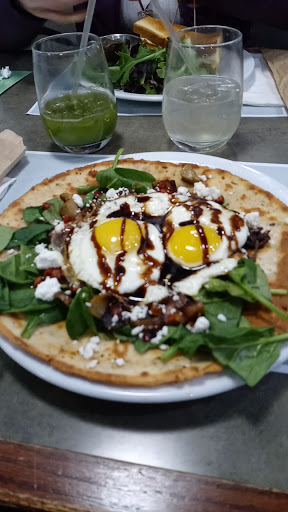 I go here periodically...Im always satisfied with the food, it has interesting dishes and i adore the french press option. Which my favorite FP is the Sinful Delight....it is full of flavor and has chocolate notes. The dish that I am posting is called Huevoes Rancheros and is enough food for me to split it into 3 separate meals. I would recommend it if you are a very hungry man (who can eat the whole thing) or if you are like me and dont mind having delicious leftovers.