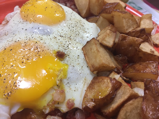 To begin, I came here expecting a 4 star rated diner ... boy was I in for a surprise. First of all I ordered 2 eggs and some turkey bacon along with a side of quality corned beef hash. The picture on the menu of the corned beef hash looked like it consisted of Fresh cut potatoes, and homemade corned beef. So when I received a plate of dog food that had an after taste of rotten flesh, I was dumbfounded. If I wanted chum, I wouldve asked plankton to make my meal. And the turkey bacon was undercooked, i pondered to myself, do i look like a wild animal?. Not to mention the NY omelette that my girlfriend received contained canned salmon from cvs rather than freshly sliced Lox like the menu advertised. Dont even get me started on the Sodexho bagels.The server was really nice but next time Ill just stick with going to petco for my breakfast.