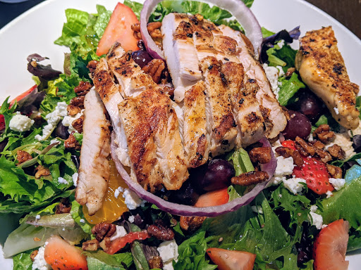 Salad with chicken was great ...our server was great an friendly. She also the bartender and my drink was just how i liked it..her name was liz...the mng checked on us i think his name was chello...great experience