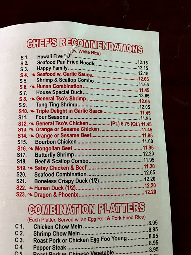 We order take out on regular basis. My favorite is their Orange Chicken! Its reasonably priced and theres always enough to share and still have leftovers! Their healthy options are also very good. Vegetables are fresh and plenty. On the downside is finding parking at a meter on Centre St. can prove to be difficult at times.